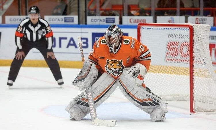 Karantīnas laikā visai neparastus treniņus aizvada Kontinentālās hokeja līgas (KHL) kluba Habarovskas “Amur” vārtsargs Jevgēņijs Aļikins.