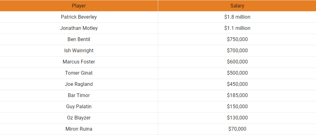 Izraēlas medijs “Israel Hayom” tradicionāli pirms gaidāmās sezonas publicē valsts basketbola klubu spēlētāju algas. Šobrīd kļuvušas zināmas ULEB Eirolīgas kluba Telavivas “Maccabi” un ULEB Eirokausa komandas Telavivas “Hapoel” basketbolistu atalgojums.