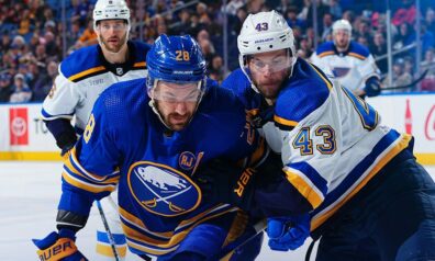 Girgensons aktīvi presē “Maple Leafs” hokejistus, Metjūzs pret “Sabres” gūst 60. vārtus šosezon