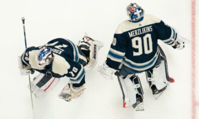 Merzļikins: Ar Korpisalo centāmies darīt labāko darbu “Blue Jackets” labā