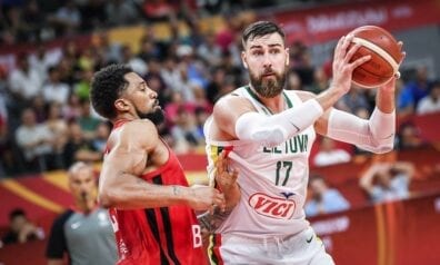 Valančūns ar 89% precizitāti un “double-double” palīdz lietuviešiem kvalifikāciju sākt ar uzvaru