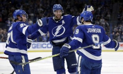 “Lightning” līderu cīņā pieveic “Maple Leafs”, izcīnot astoto uzvaru pēc kārtas (VIDEO)