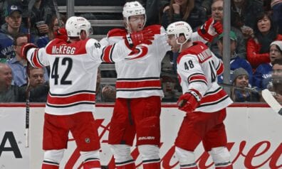 Aho “hat-trick” nokārto uzvaru “karstajai” Karolīnai, “Ducks” 11. neveiksme pēc kārtas (VIDEO)