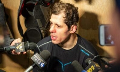 “Penguins” ielaiž divas ripas tukšos vārtos, zaudējums arī Merzļikinam (VIDEO)