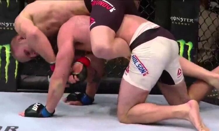 28 gadus vecais sportista cīņa ar Aleksu Nikolsonu tika apturēta otrajā raundā pēc žņaugšanas paņēmiena.