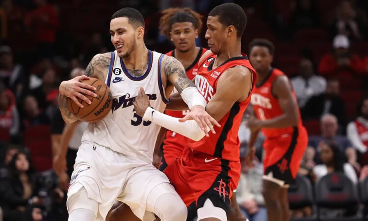 Nacionālās basketbola asociācijas (NBA) regulārā čempionāta mačā trešdien Vašingtonas “Wizards” viesos pieveica Hjūstonas “Rockets”, bez savainotā Latvijas basketbolista Kristapa Porziņģa tiekot pie otrā panākuma pēc kārtas. Mača gaitā “Wizards” bija iedzinējos ar 19 punktu deficītu, tomēr spēja to likvidēt un izcīnīt uzvaru ar 108:103 (25:30, 18:28, 28:23, 37:22).