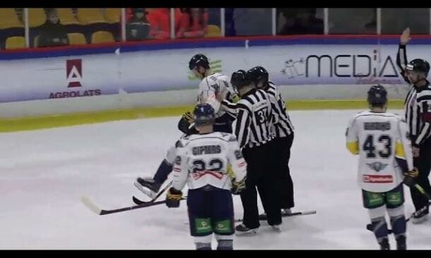 Latvijas vicečempiones “Kurbads” spēlētājs Juris Štāls par izdarīto sitienu ar nūju 8.janvāra “Optibet” hokeja līgas (OHL) spēlē pret “Zemgale”/LLU, saņēmis sešu spēļu diskvalifikāciju, vēsta turnīra organizatori. Par šādu soda mēru lēma Latvijas Hokeja federācijas (LHF) … Continue reading Štāls iesit pretiniekam pa kājstarpi un saņem sešu spēļu diskvalifikāciju (VIDEO)