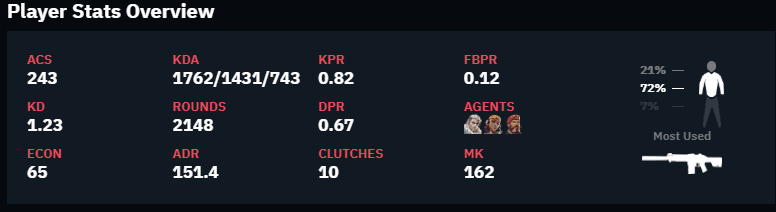 Svarenieks savā “Valorant” karjerā savus pretiniekus ir nogalinājis 1762 reizes un miris 1431 reizi, kas rezultējas kopējo nonāvēto pretinieku un nāvju attiecībā 1.23, kas ir otrs labākais rādītāks komandā aiz pieminētā “mixwell”, kuram attiecība ir 1.34. Tas ir arī viens no labākajiem rādītājiem starp visiem pasaules spēlētājiem.